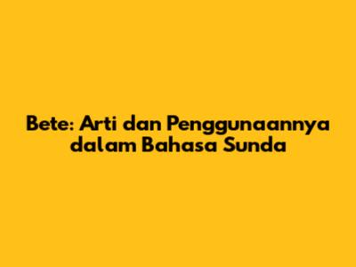 Bete: Arti Dan Penggunaannya Dalam Bahasa Sunda