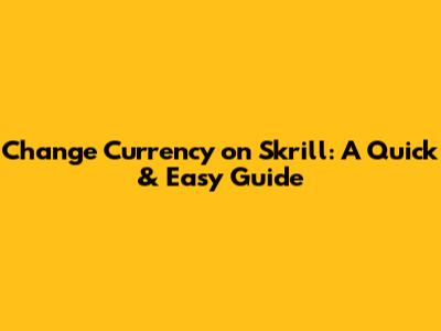 Change Currency On Skrill: A Quick & Easy Guide