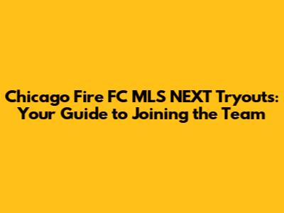 Chicago Fire FC MLS NEXT Tryouts: Your Guide To Joining The Team