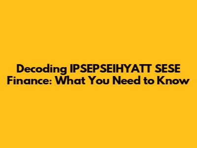 Hey guys! Ever stumbled upon a term that sounds like it belongs in a sci-fi movie rather than the world of finance? Well, IPSEPSEIHYATT SESE might just be that term for you. But don't worry, we're here to break it down and make sense of it all. In this article, we'll dive deep into what IPSEPSEIHYATT SESE finance actually entails, why it matters, and how it might impact you. So, buckle up and let's get started!