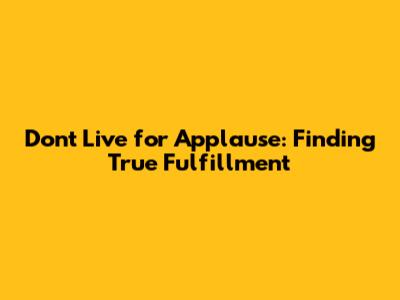 Don't Live For Applause: Finding True Fulfillment
