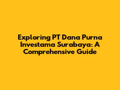Exploring PT Dana Purna Investama Surabaya: A Comprehensive Guide