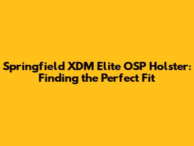 Find The Perfect Springfield XDM Elite OSP Holster