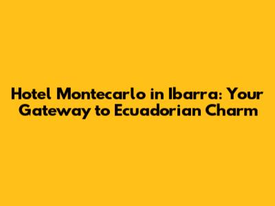 Hey guys! Planning a trip to Ibarra, Ecuador? You've probably been searching for the perfect place to stay, right? Well, let me tell you about Hotel Montecarlo in Ibarra. It might just be the spot you've been dreaming of! We're diving deep into what makes this hotel a great choice, covering everything from its location and amenities to nearby attractions and overall vibe. So, grab a cup of coffee, settle in, and let's explore the wonders of Hotel Montecarlo!