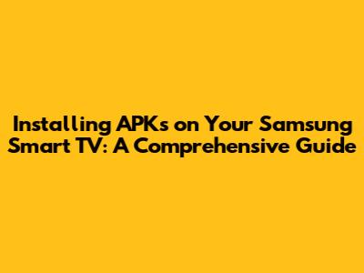 Hey guys! Ever wanted to get more out of your Samsung Smart TV? One awesome way to do that is by installing APKs (Android Package Kits). Think of APKs as the apps that aren't officially available in the Samsung App Store. Maybe it's a cool streaming service, a niche game, or a handy utility app. Whatever it is, this guide will walk you through installing APKs on your Samsung Smart TV like a pro. Let's dive in!