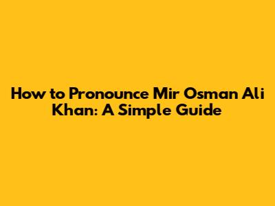 How To Pronounce Mir Osman Ali Khan: A Simple Guide