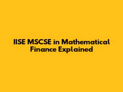 IISE MSCSE In Mathematical Finance Explained
