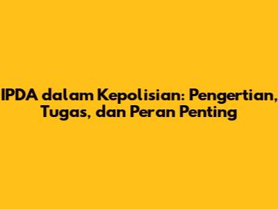 IPDA adalah singkatan dari Inspektur Polisi Dua, yang merupakan pangkat awal perwira pertama dalam kepolisian. Mereka memegang peranan penting dalam struktur kepolisian, mulai dari memimpin anggota, melaksanakan tugas operasional, hingga membangun hubungan dengan masyarakat. Tugas dan tanggung jawab seorang IPDA sangatlah kompleks dan menantang, namun mereka selalu siap sedia memberikan yang terbaik untuk menjaga keamanan dan ketertiban masyarakat.