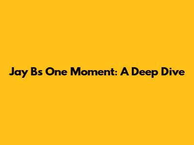 Jay B's 'One Moment': A Deep Dive