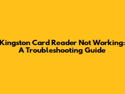 Kingston Card Reader Issues: Troubleshooting Guide