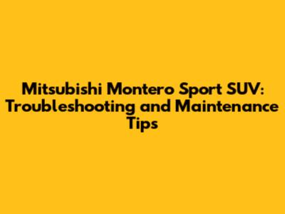 Montero Sport SUV: Troubleshooting And Maintenance Tips