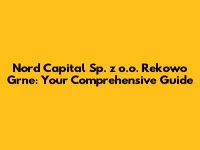 Hey guys! Ever heard of Nord Capital Sp. z o.o. in Rekowo Grne? If not, no worries! We're diving deep into everything you need to know about this company. From its core business to its impact on the local community, we've got you covered. Whether you're a potential investor, a curious local, or just someone who stumbled upon this article, stick around! We're about to unravel the story of Nord Capital in Rekowo Grne.