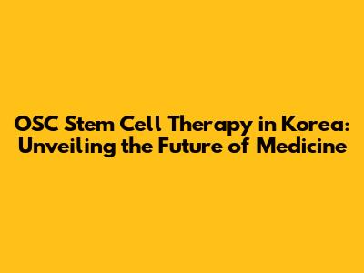 OSC Stem Cell Therapy In Korea: A Deep Dive