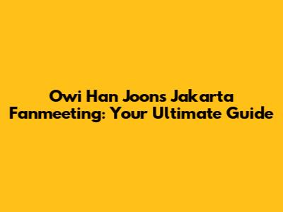 Owi Han Joon's Jakarta Fanmeeting: A Must-Know Guide