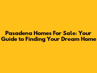 Pasadena Homes For Sale: Your Guide To Finding Your Dream Home