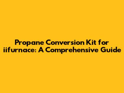 Propane Conversion Kit For Iifurnace: A Comprehensive Guide