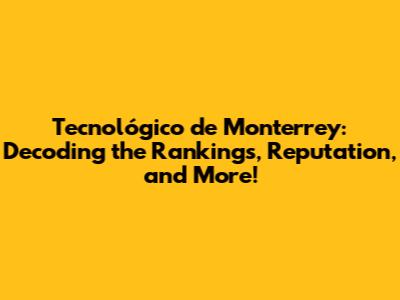 Tecnológico De Monterrey: Rankings, Reputation & More!