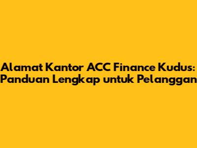 Hai, teman-teman! Kalian lagi cari alamat kantor ACC Finance di Kudus? Pas banget, nih! Artikel ini bakal kasih info lengkap seputar lokasi kantor ACC Finance di Kudus, lengkap dengan tips-tips berguna lainnya. Jadi, buat kalian yang butuh info seputar ACC Finance di Kudus, simak terus, ya!