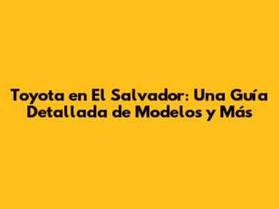 Toyota En El Salvador: Guía Completa De Modelos Y Más