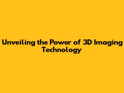 Unveiling The Power Of 3D Imaging Technology