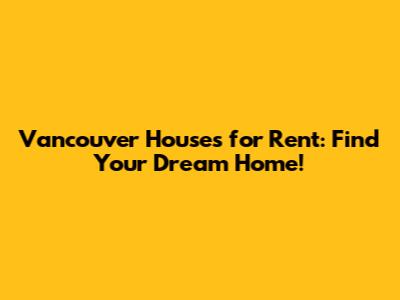 Vancouver Houses For Rent: Find Your Dream Home!