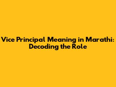 Vice Principal Meaning In Marathi: A Comprehensive Guide